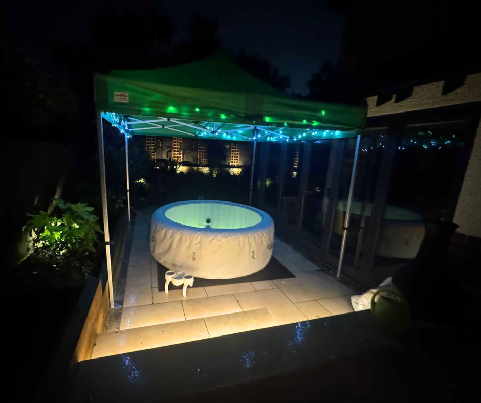- Essentials (£220): Includes hot tub setup, all-weather gazebo, foam padded floor, fairy lights, chemicals, and a new filter. Perfect for those who want the basics with a touch of elegance.